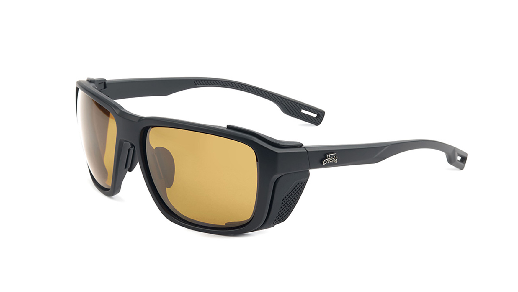 The matte black frame is complemented by metal Fortis logo’s on each temple, while soft rubber arm tips ensure all-day comfort.
