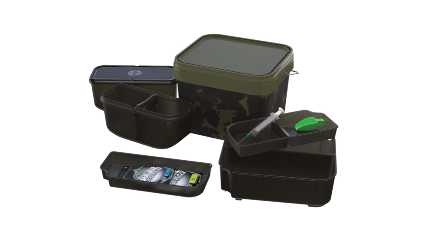 Also, as part of the system comes a Korda branded syringe for injecting liquids like Goo into your bags and a Korda green bait-scoop for loading them up. Both fit perfectly into the trays provided.