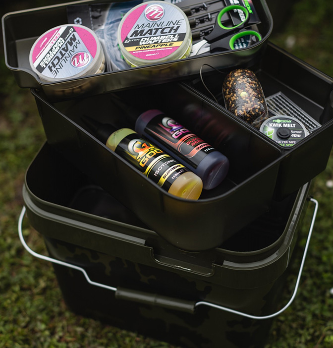 Finally, it’s all stored inside a Korda dark kamo 10L bucket and because it’s a modular system, all components fit efficiently and precisely inside the bucket for easy transportation and storage.