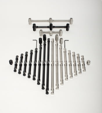 Choose from a set of fully interchangeable components and ‘build your own system’, for your own exact spec and taste. Choose from 8 different lengths of bar in the highest Marine grade 316 Stainless Steel or Prolite Black.